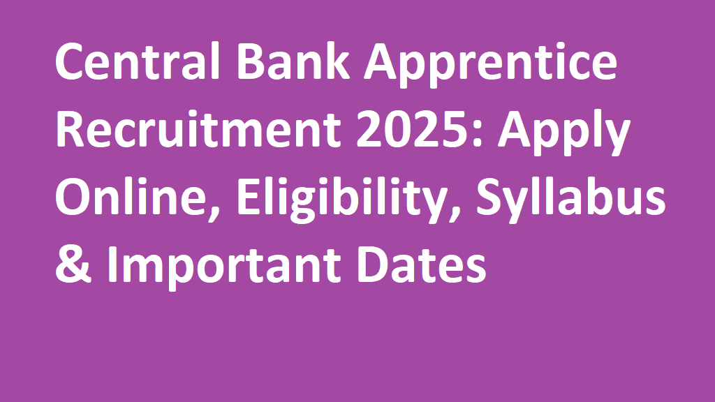 Central Bank Apprentice Recruitment 2025: Apply Online, Eligibility, Syllabus & Important Dates